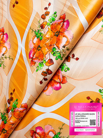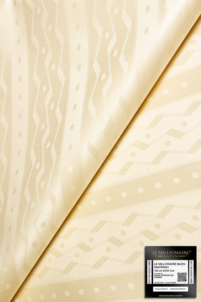 This unique brocade shadda is manufactured in Europe using 100% finest Egyptian cotton. This Bazin riche (damask fabric) has been designed exclusively for our African customers. Le Millionaire Bazin is a unique Jacquard product, the dense fabric of the finest Egyptian cotton yarns.
